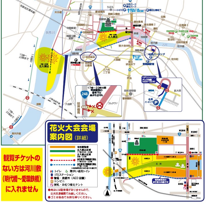 岡崎花火大会の交通規制マップ