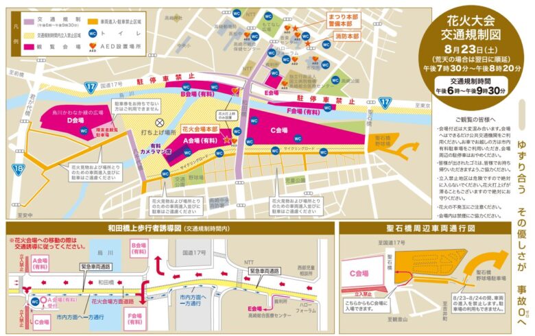 | 交通規制時間 | 花火大会当日(開始前から終了後まで) |