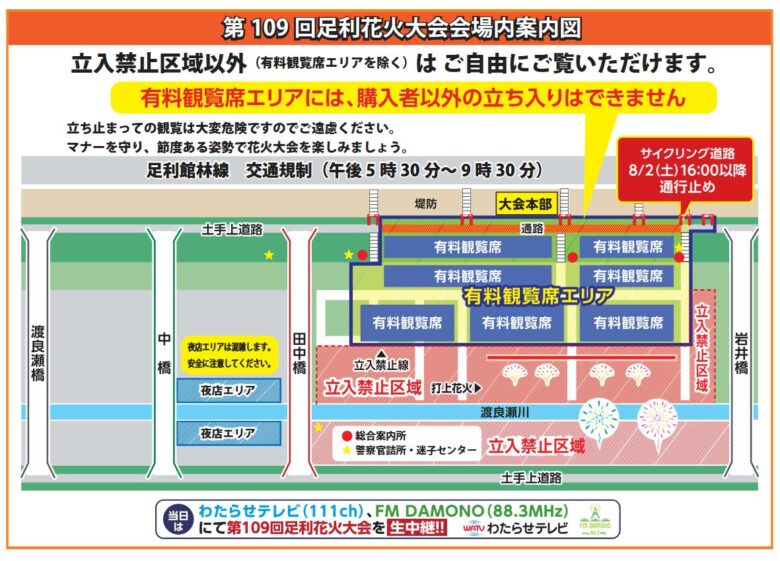 | 交通規制 | 16:30~22:00、会場周辺で車両進入禁止 |