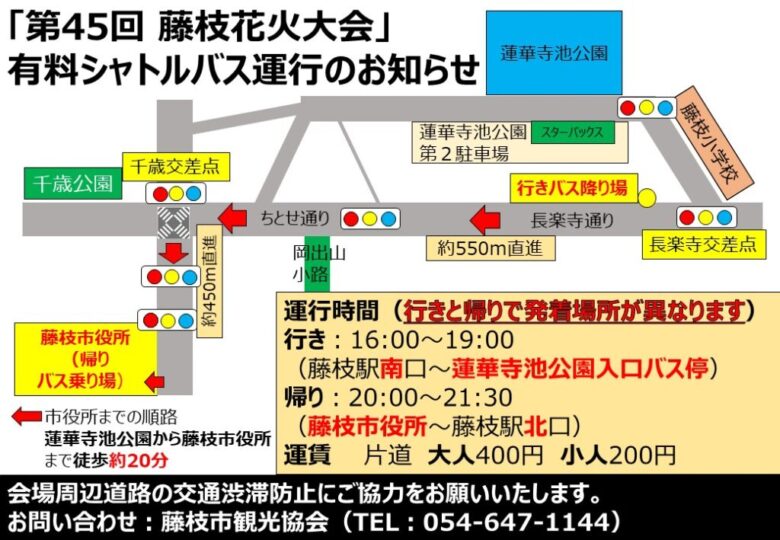 | 問い合わせ先 | 054-647-1144 (藤枝市観光案内所) |