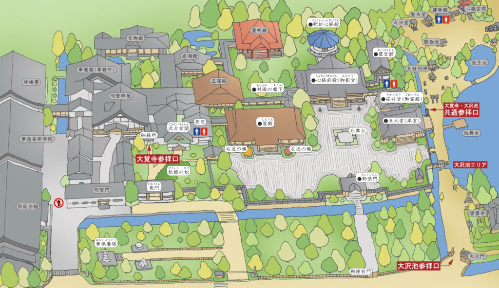 - 特徴:観月台からは大沢池を一望できる