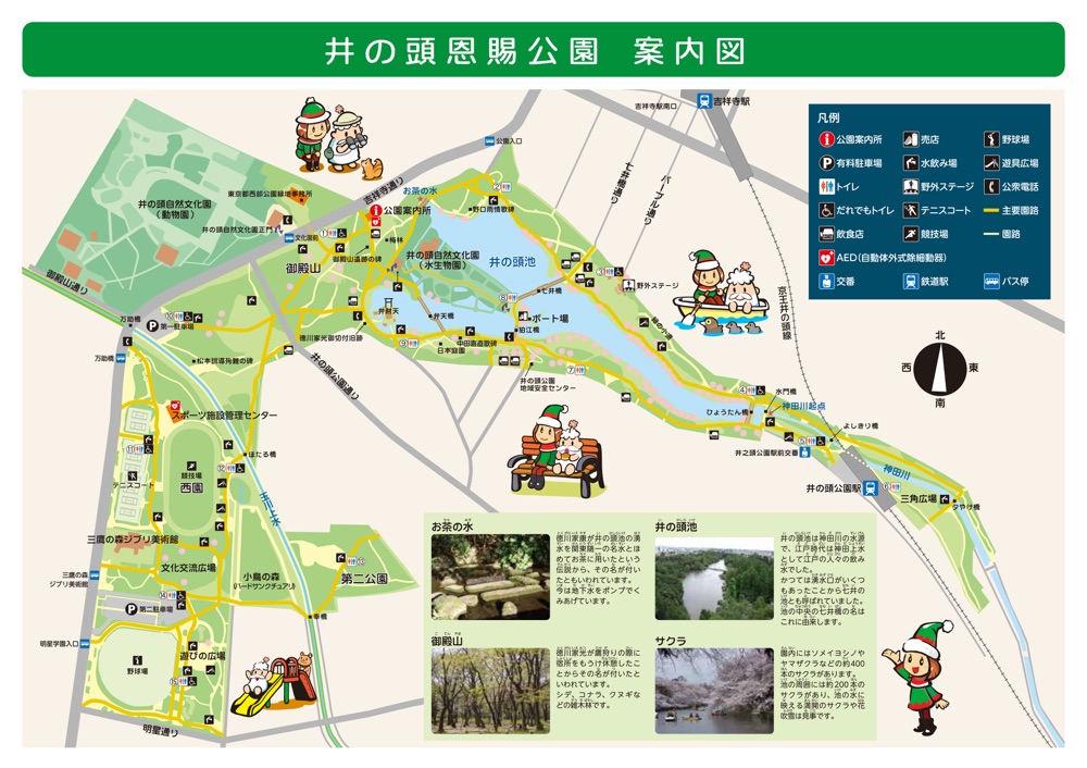 主な施設 | 井の頭池、ボート乗り場、野外ステージ、運動場、遊具広場 |