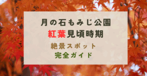 約50本のオオモミジが色づく月の石もみじ公園は、紅葉の穴場スポットです。夜間にはライトアップも行われ、幻想的な雰囲気を楽しめます。