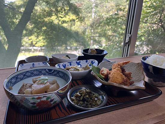 牛滝山の紅葉を見ながらランチ。日替わり田舎御膳などが味わえる。※日替わり田舎御膳は要予約