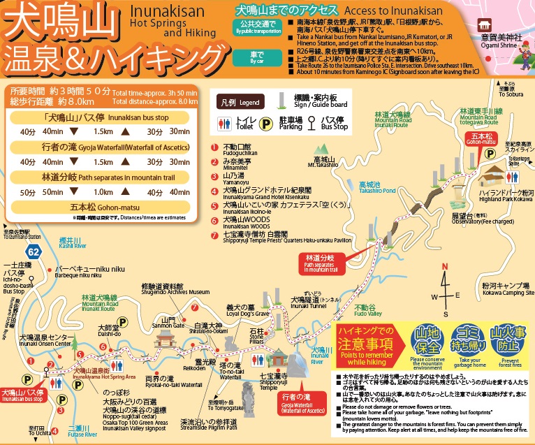 - JR阪和線「日根野駅」から南海バス犬鳴山行きで約30分