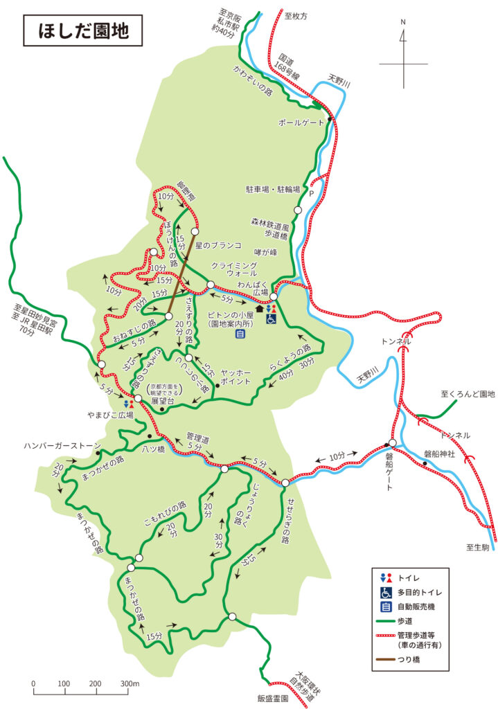 ほしだ園地は、大阪府交野市に位置し、公共交通機関と車の両方でアクセスが可能です。
