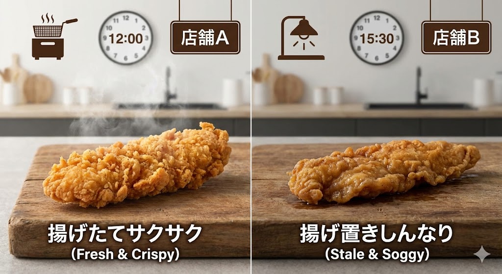 さらに、店舗によって油の交換頻度や揚げ時間の微妙な差があり、こうした「現場の違い」も食感のブレにつながります。