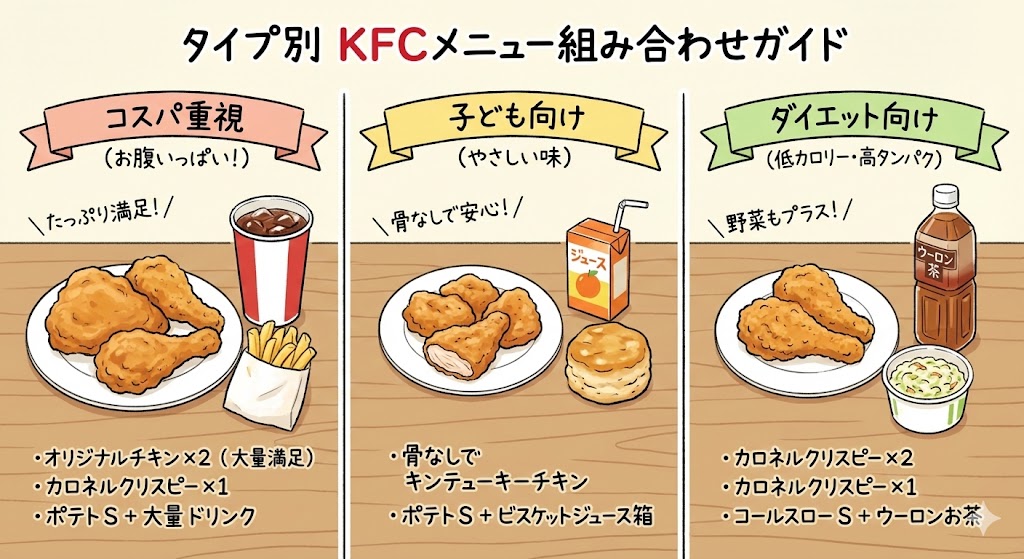 ケンタッキーのチキンメニューは、それぞれ役割が違います。