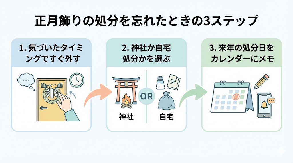 どんど焼きの日程を過ぎてしまった場合、選べるルートは大きく3つあります。