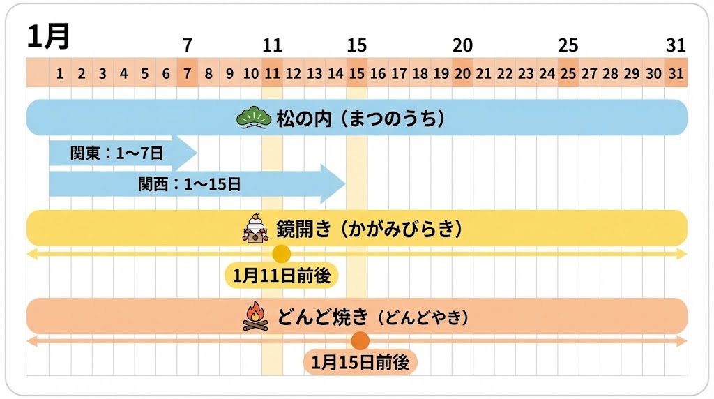 うちの地域はいつまで?松の内・鏡開き・どんど焼きの“時期感覚”をひと目で整理