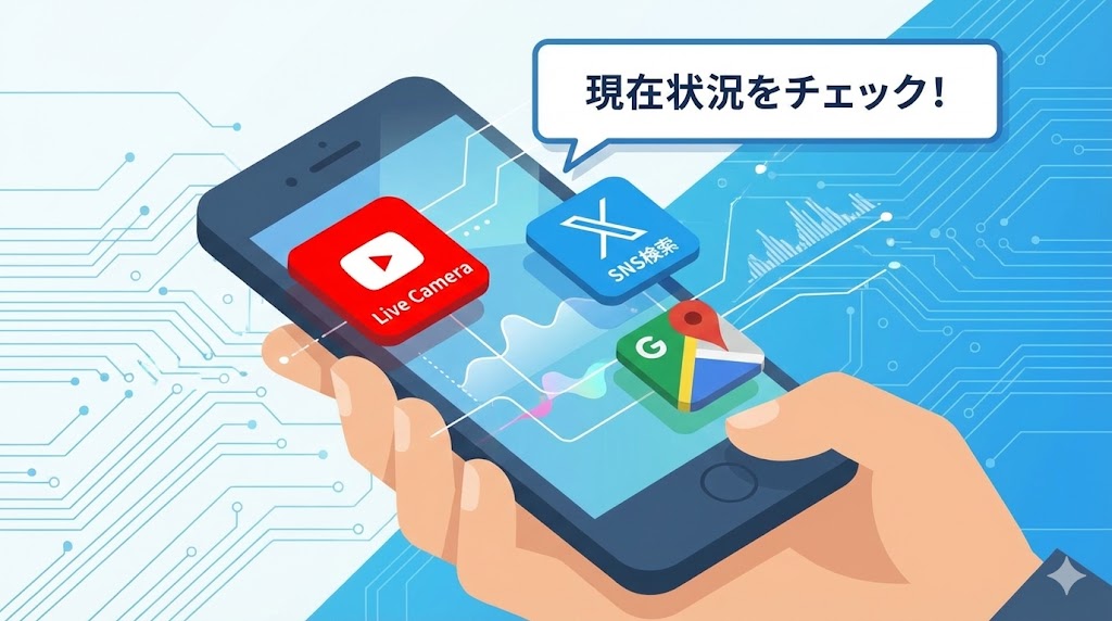 現地に向かう直前や移動中に、現在の混雑状況を正確に把握する方法があります。