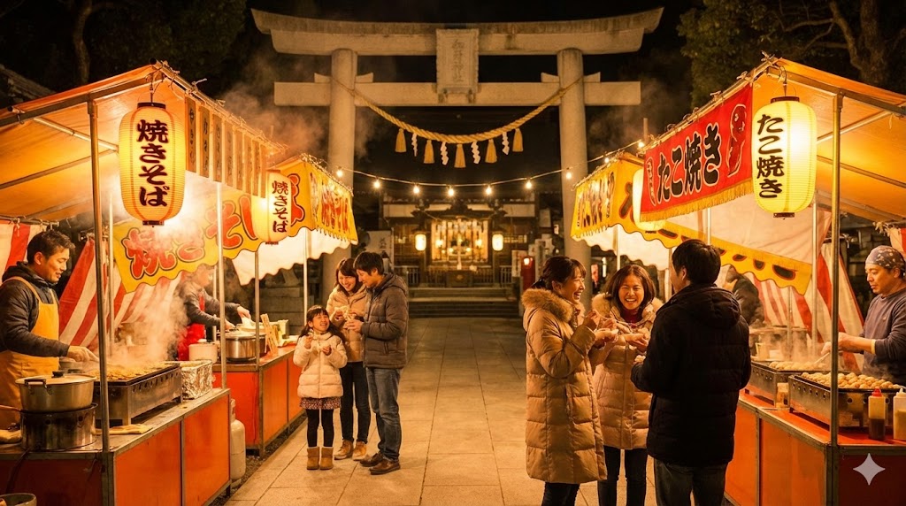 - 屋台グルメを楽しむなら、出店数が豊富な1月5日までに訪れること。