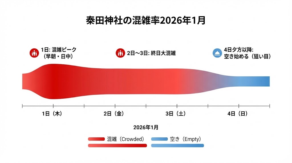 - 狙い目: 「早朝5:00〜8:00」または「1月4日(日)の夕方以降」。