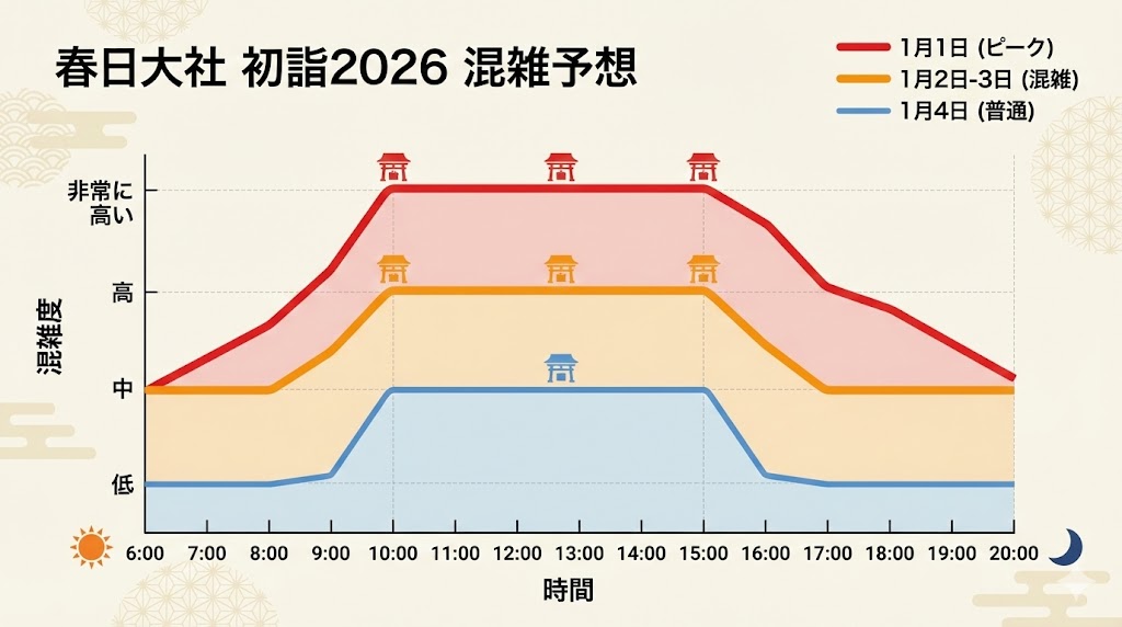 2026年の春日大社初詣は、カレンダーの配列により1月4日(日)まで混雑が続く「長期戦」が予想されます。