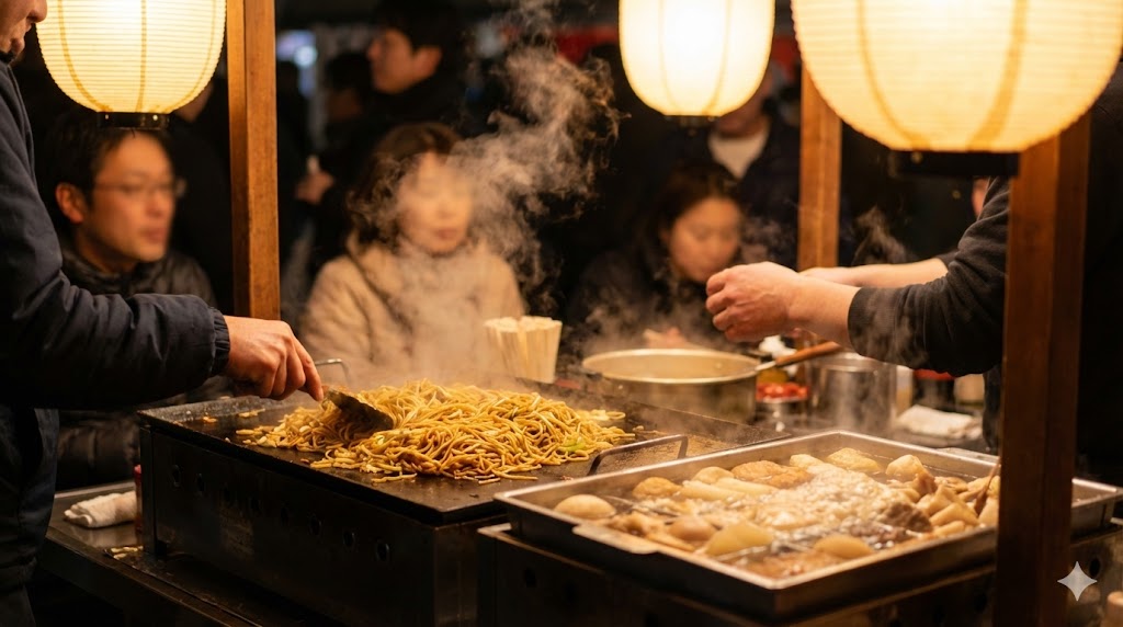 初詣の楽しみの一つといえば、参道に並ぶ屋台(出店)です。
