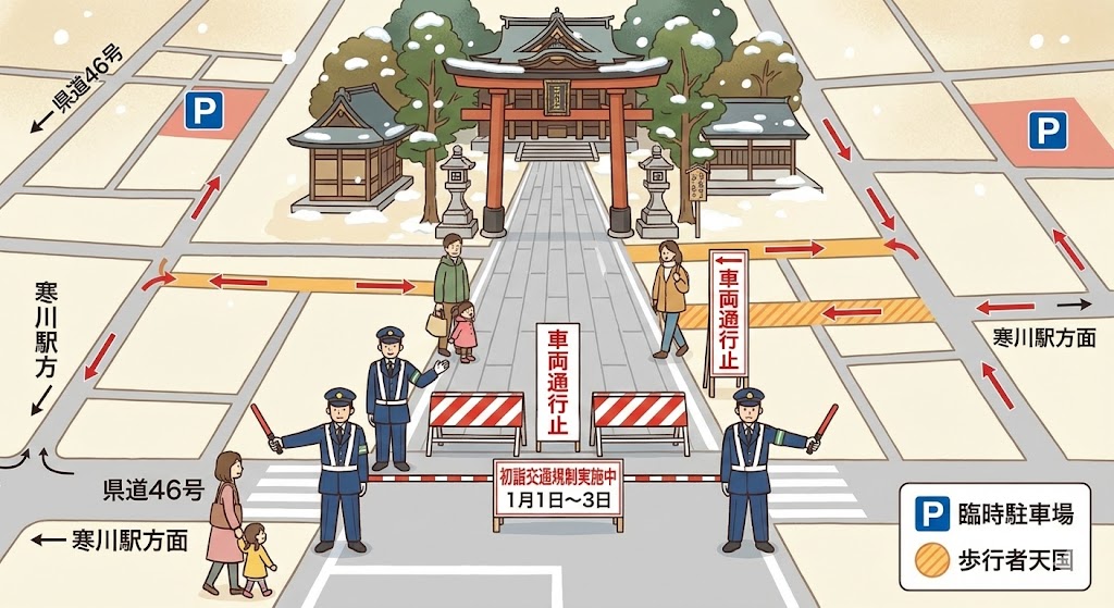 初詣期間の交通規制とアクセスの注意点