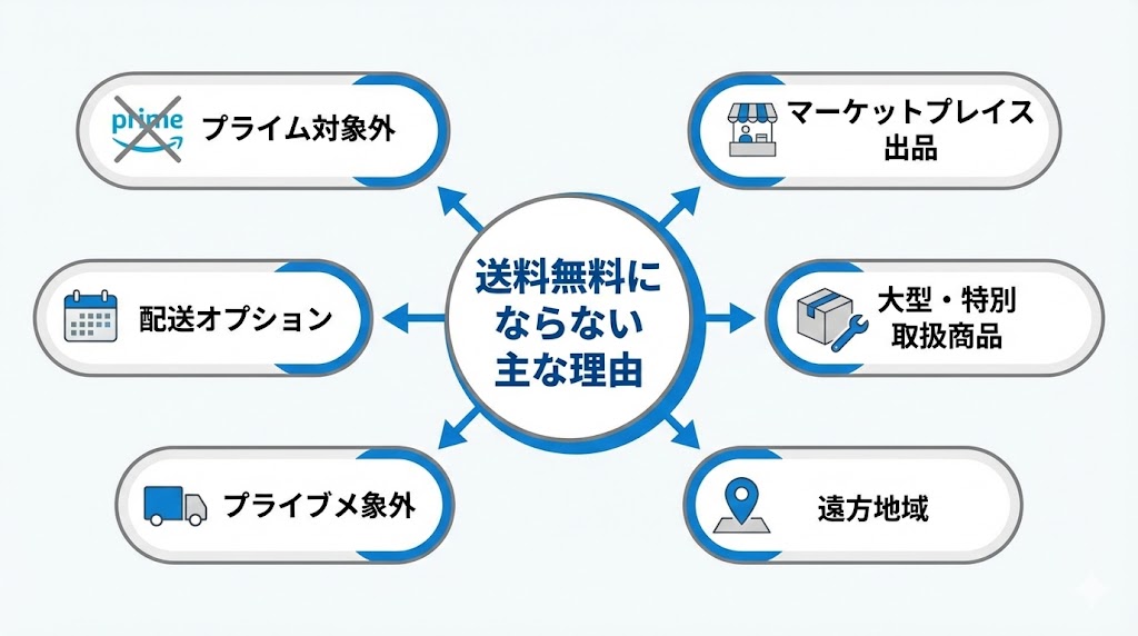 よくある原因は主に7パターン(プライム対象外・マーケットプレイス・大型商品など)