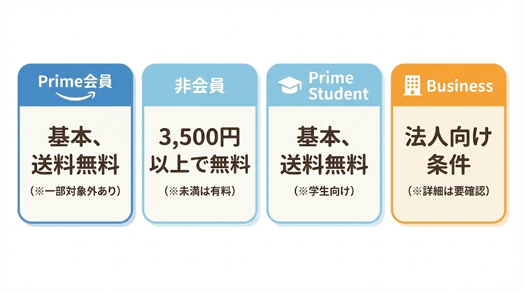 Prime/非会員/Prime Student/Businessで変わる送料無料条件