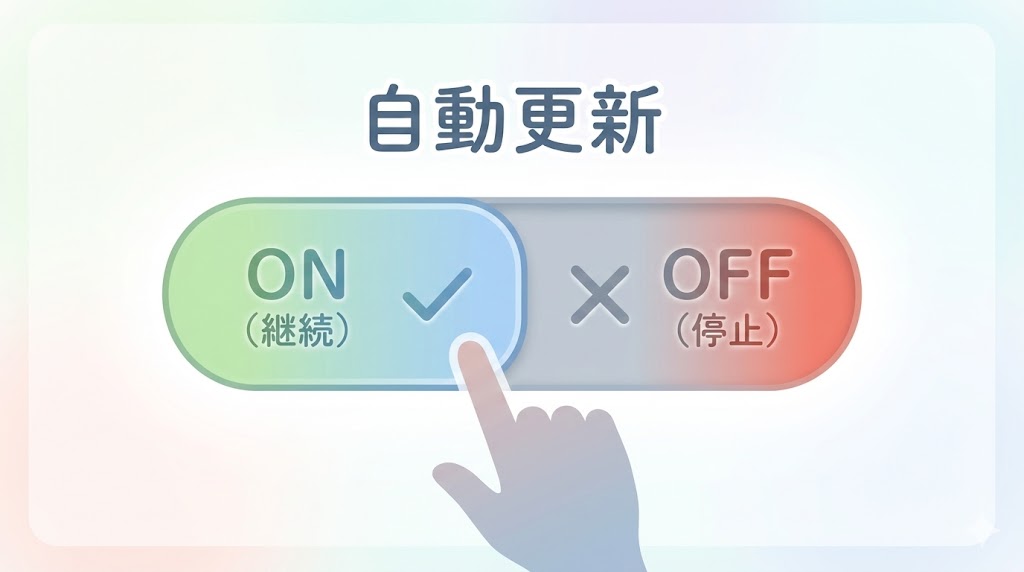 | 自動更新オン | 次回更新日と会費が表示 | 更新日に自動で会費が発生 |