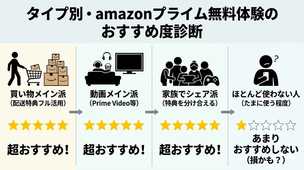 • 通販や動画をよく使う人にとっては、無料体験をきっかけに生活との相性を見直す良い機会になる