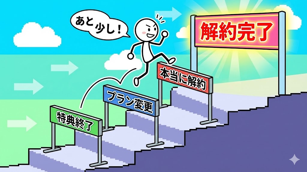 | 手順3 | 引き止めを突破 | 3〜4回クリックが必要 |