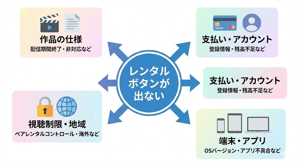 実は、レンタルできない理由は「作品側の仕様」と「支払い・アカウント・端末設定」のどこかにほぼ必ずあります。