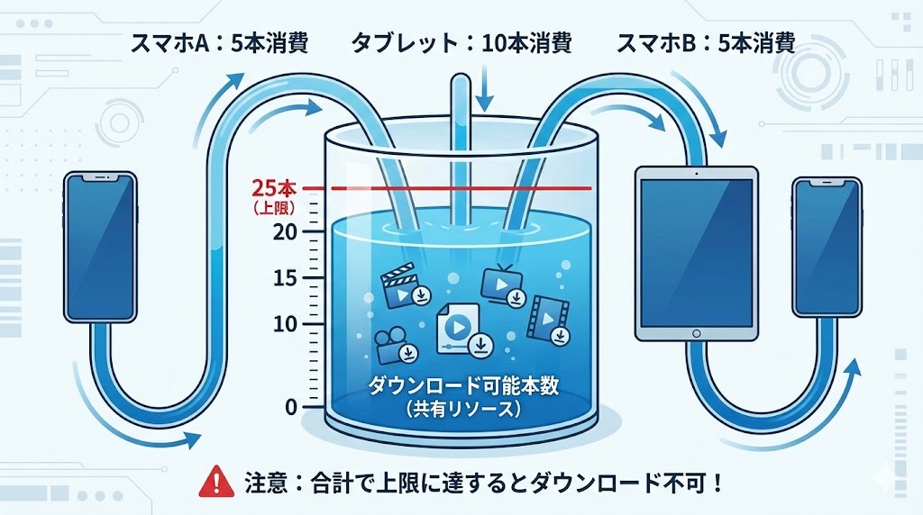 家族が多い場合は、ストリーミング枠を「テレビ」などの共有画面に残し、個人のスマホでは「ダウンロード視聴」を徹底すると、制限エラーを回避できます。