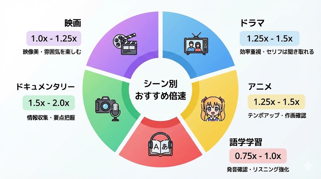 ライト視聴派等速中心+必要な場面だけ倍速疲れにくく長く楽しめる