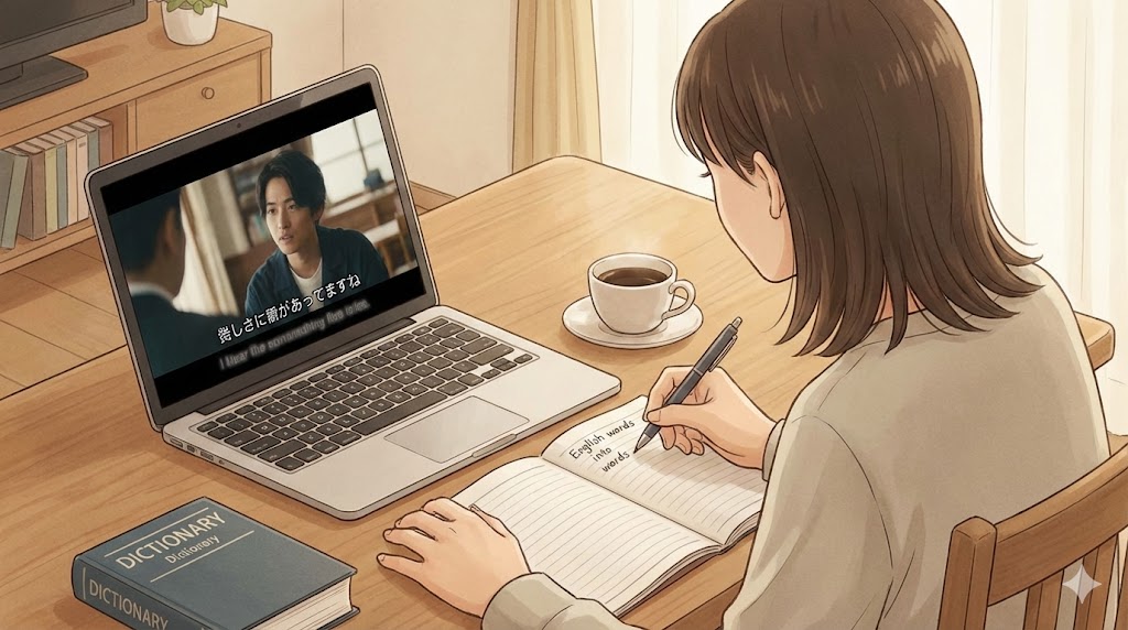 日本語音声+日本語字幕で見ていると、耳で聞いた言葉と文字がつながりやすくなり、漢字や言い回しに自然と触れられます。