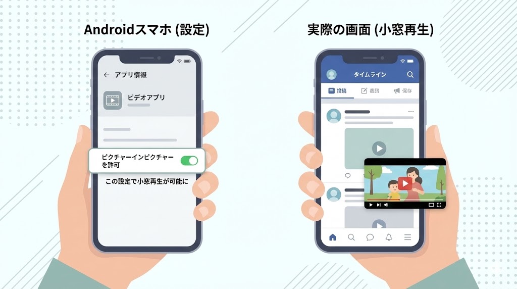 iPhone・iPadでは、OSのPIP機能と設定アプリのスイッチがカギになり、Androidではバージョンと端末ごとの省電力設定が挙動を大きく左右します。