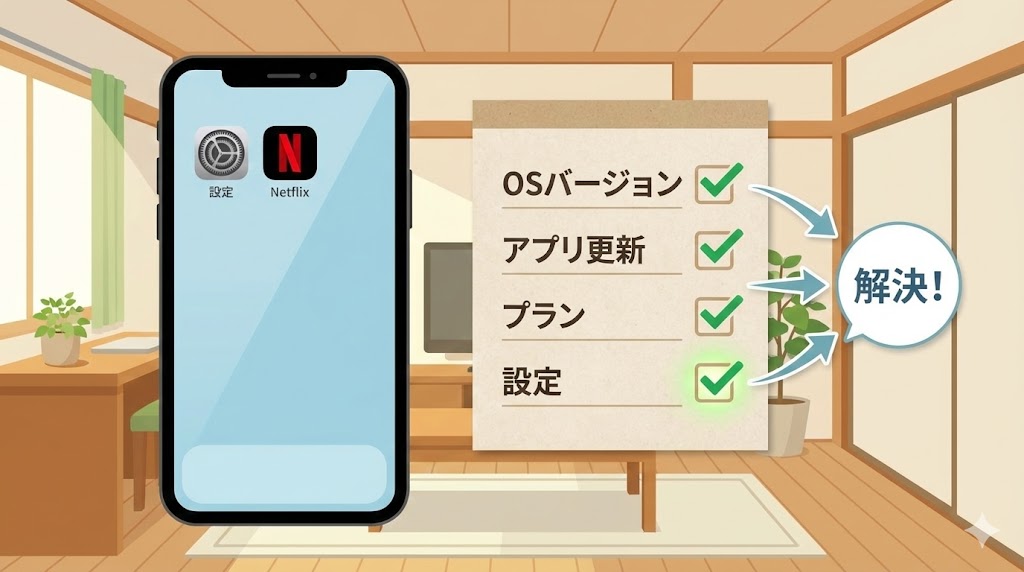 また、Netflixアプリ側のバージョンが古いままだと、新しいOSとの組み合わせで挙動が不安定になる場合もあります。