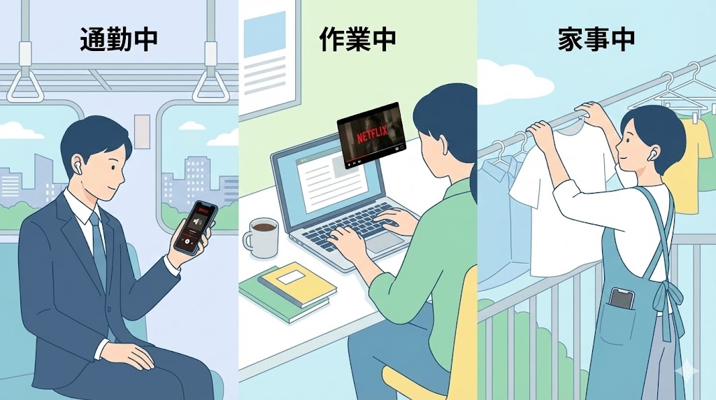 シーン別おすすめの使い方|通勤・作業・家事での「耳だけNetflix」