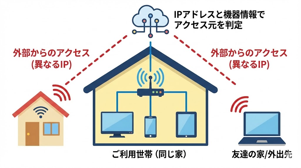 | 世帯判定 | 接続環境やIPアドレスなどを総合的に判断 | 継続的な別場所利用は検知されやすい |