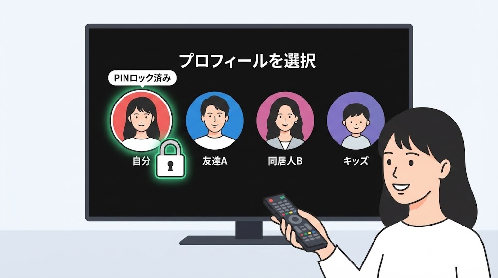 | 視聴履歴をのぞかれる | 見ている作品が知られて気まずい | 個人用プロフィールを分けてロック |