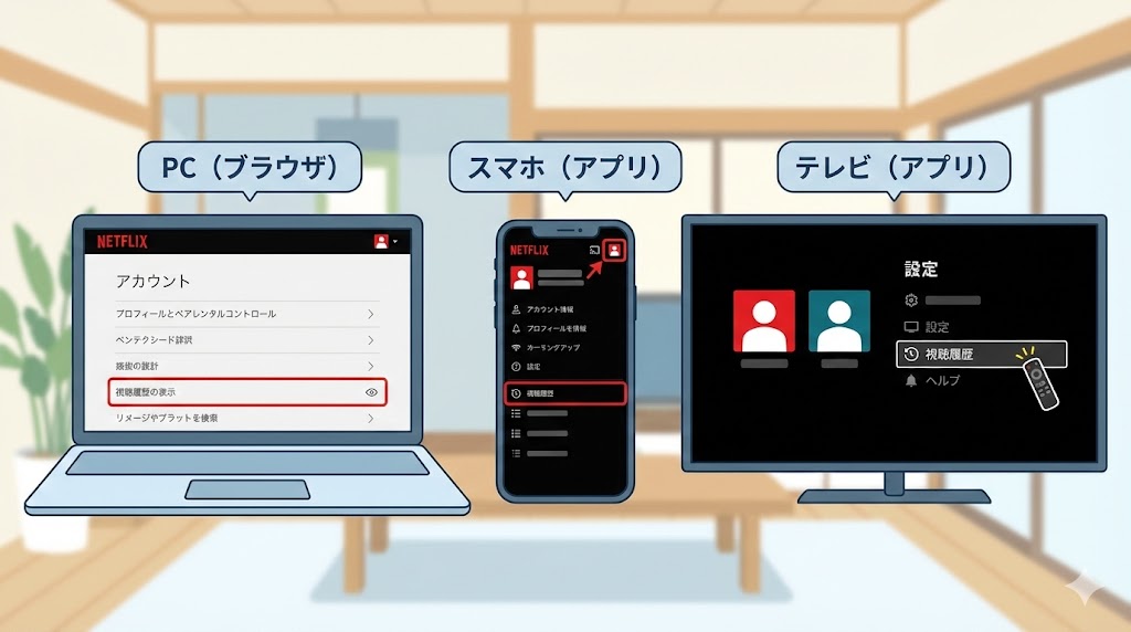 PC・スマホ・テレビ別の視聴履歴削除ステップを整理