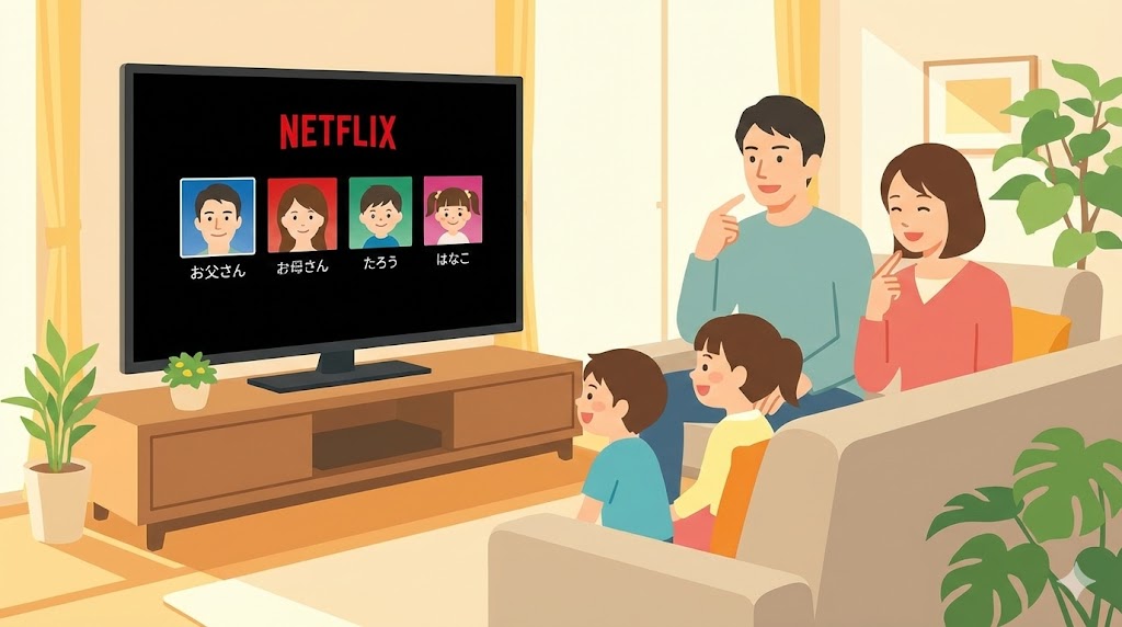 Netflixでは、アカウントの中に複数のプロフィールを作り、それぞれに視聴履歴やおすすめが紐づく形になっています。
