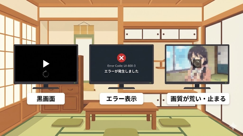 スマホでは普通に見られるのに、テレビだけダメというパターンもよくあります。