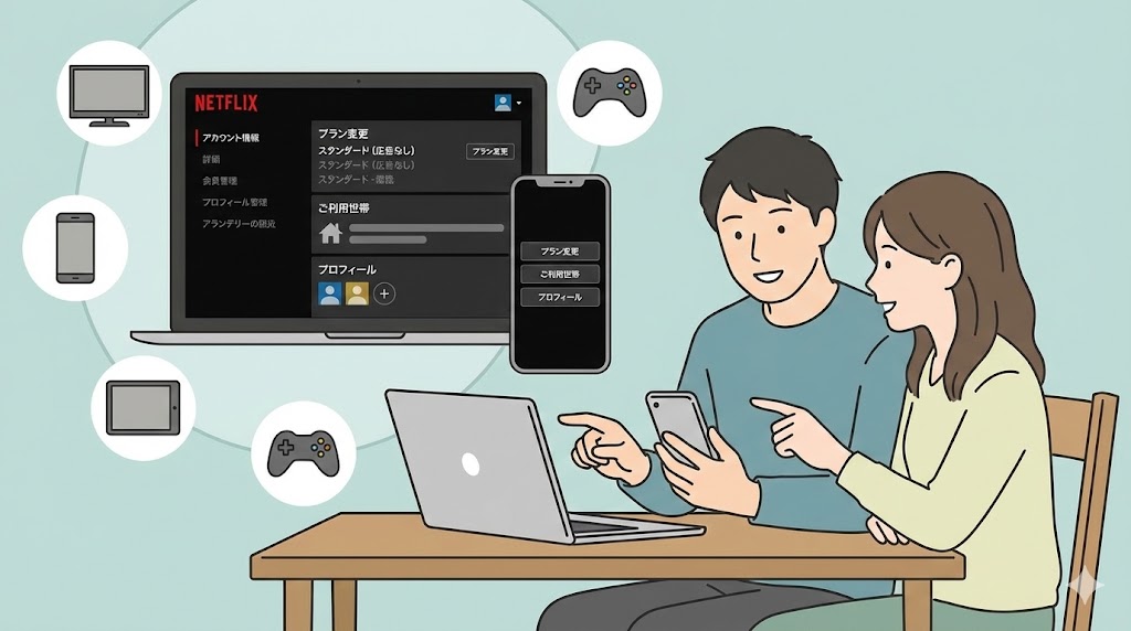 アカウント共有が多いほど、プランの同時視聴台数とご利用世帯のルールを意識的に管理することが大事になります。