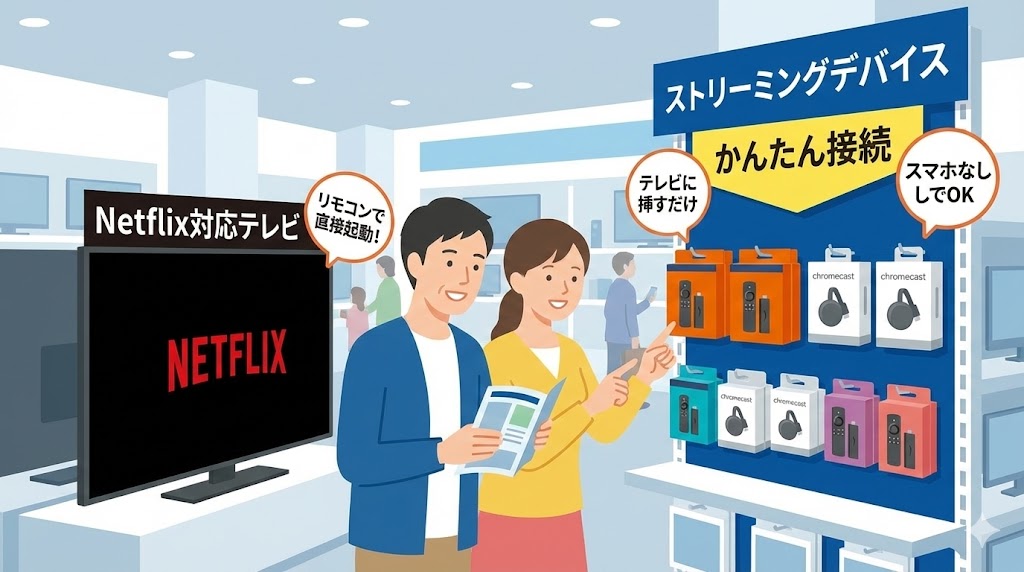 今のテレビがNetflix非対応であれば、買い替える代わりにストリーミングデバイスを追加するのも現実的な選択です。