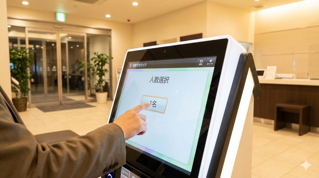 有人カウンターの場合、第一声は「一名です」とシンプルに伝えるだけで十分です。余計な言い訳や挙動は必要ありません。