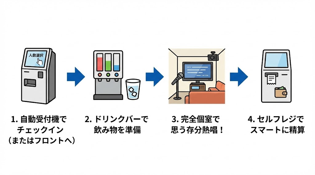 特に「ジャンカラ」の『すぐカラ』や、「快活CLUB」の自動入店システムを利用すれば、誰とも言葉を交わすことなくカラオケを開始できます。(出典:ジャンカラ公式サイト)