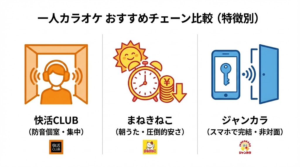A. 初心者には「快活CLUB」や普通のカラオケ店のほうが店舗数が多く、利用しやすいです。