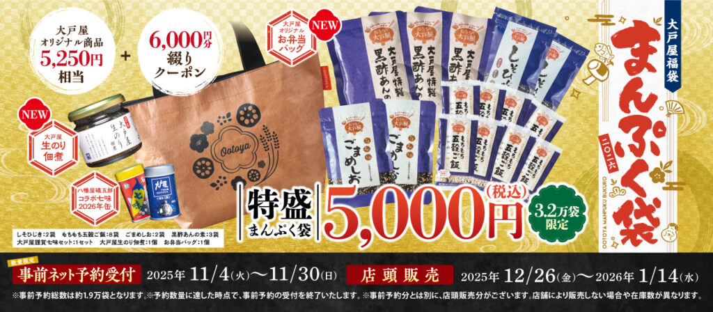 - 大戸屋福袋『まんぷく袋』今年は3.2万袋!ネット事前予約は11月4日(火)~