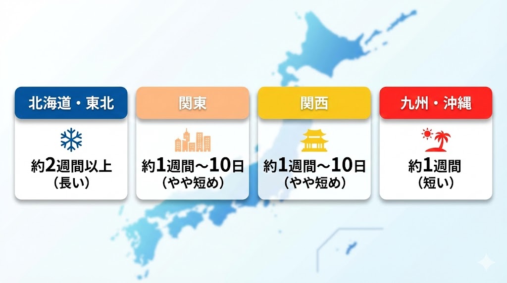 地域差だけで「長い・短い」を決めつけず、自分の大学の学年暦+地域の一般的な傾向をセットで見ておくと、納得感が高くなります。