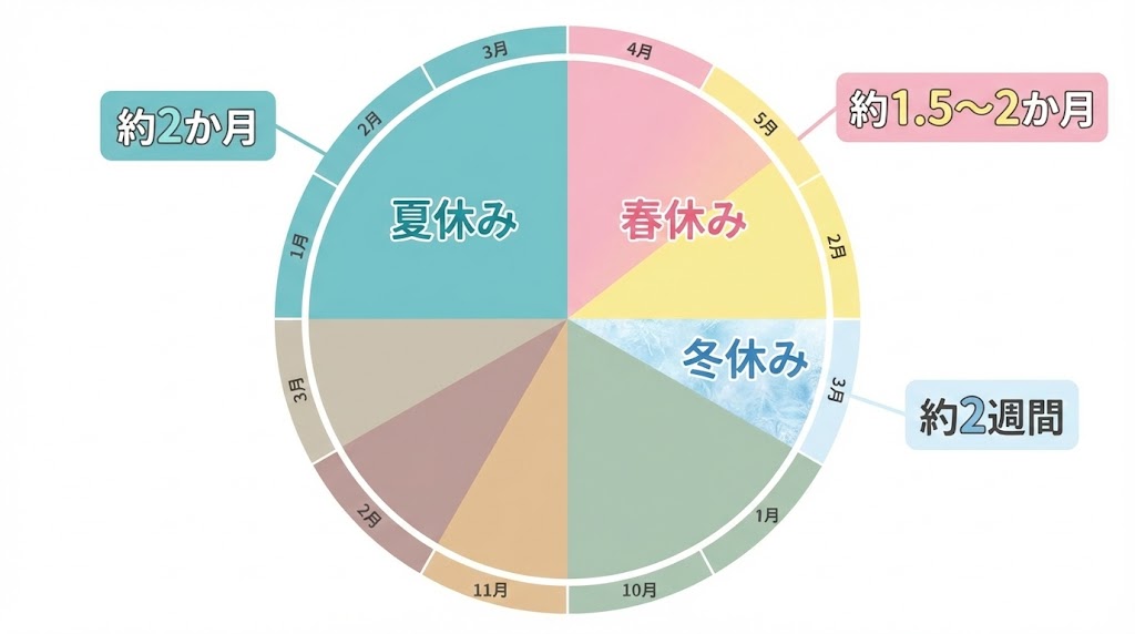 冬休みだけを見ると「物足りない」と感じがちですが、1年間トータルで見ると、自由に動ける期間はかなり長いことが分かります。