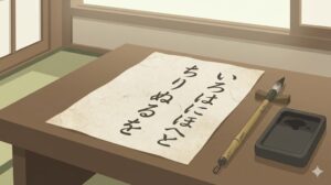 ここでは細かな文法解釈よりも、「仮名が一度ずつ登場する手習い歌」としての役割を意識しておくと、いろは順とのつながりが見えやすくなります。