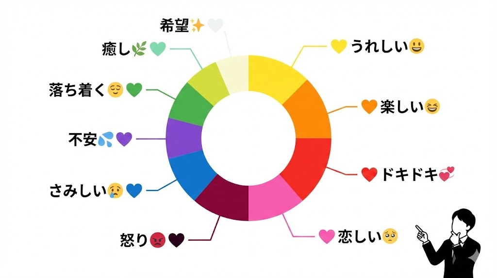 実は、ハート絵文字の色ごとのイメージには、色彩心理とネット文化の両方から生まれたある程度の「傾向」があります。