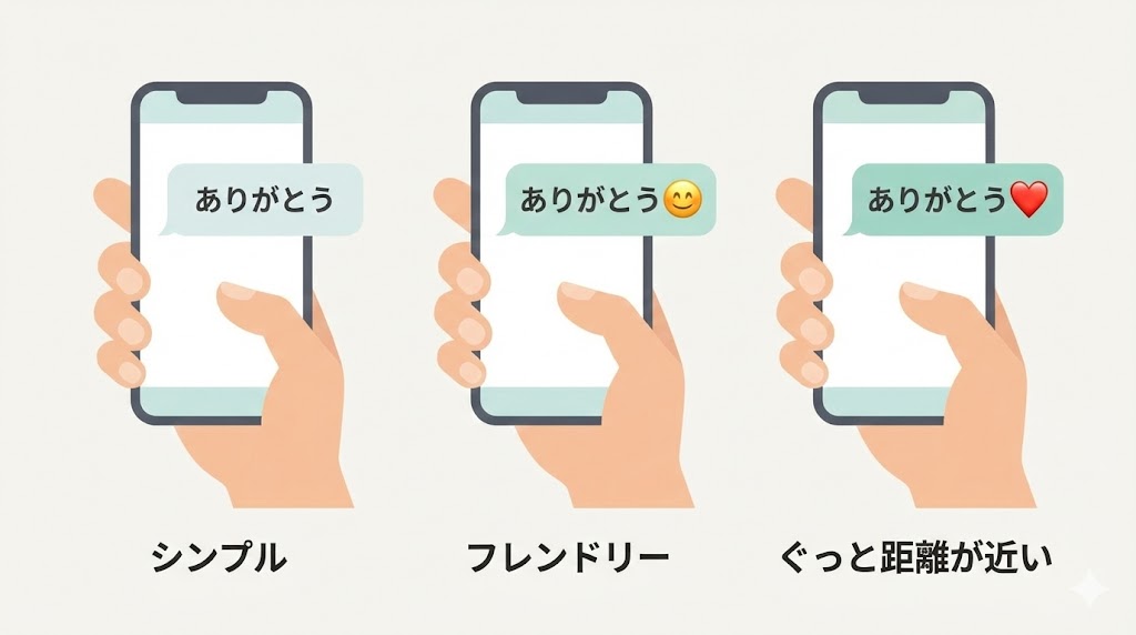 文章だけ・顔文字・ハート付きでどう印象が変わるかを、ざっくり見ておきましょう。