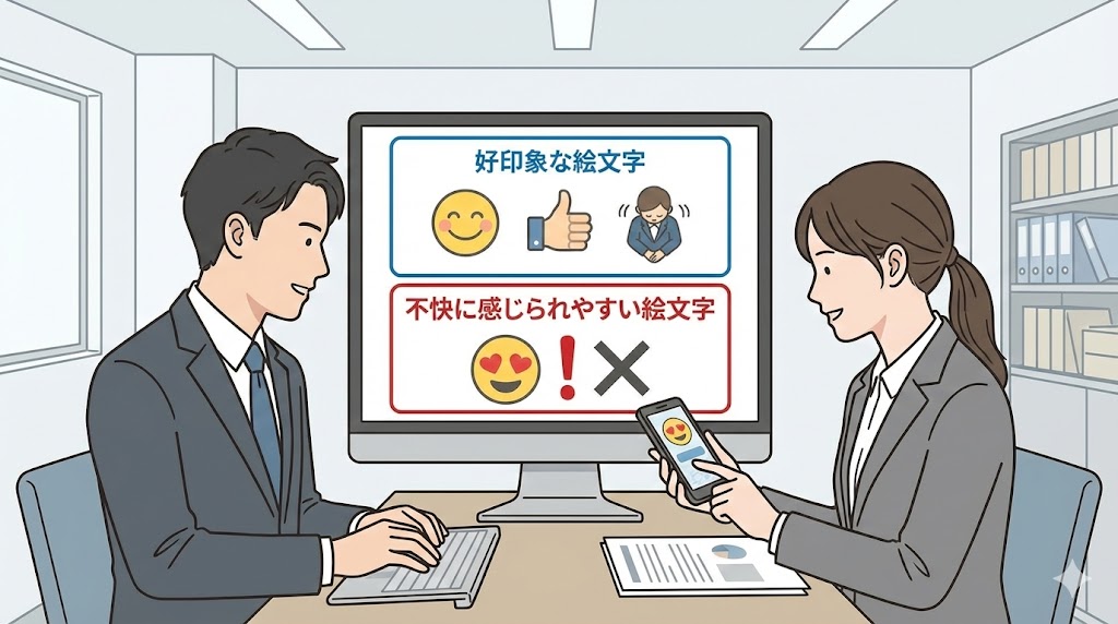 ビジネスや目上の人には、基本的に「文章だけ」か「柔らかい顔文字」までにしておくと安心です。