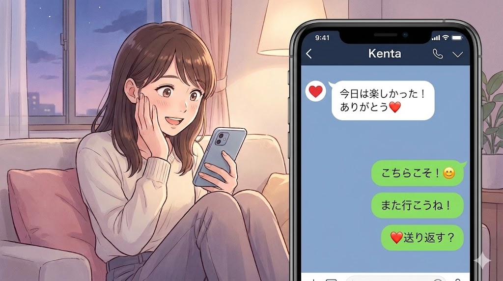同じメッセージでも、ハートが付くと一気に「距離が近い印象」になります。まずは文章だけでも十分丁寧という前提を押さえておくと、過剰にハートを使わずにすみます。